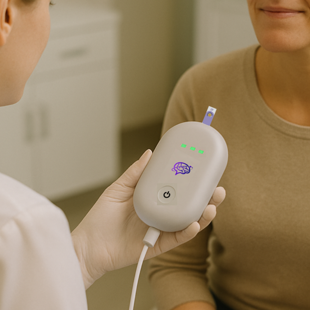 Our breakthrough technology enables rapid, lab-grade cortisol measurement from saliva using a disposable test strip and a handheld reader, delivering accurate results in under 10 minutes.